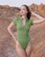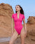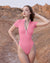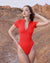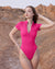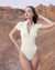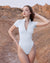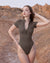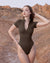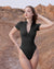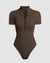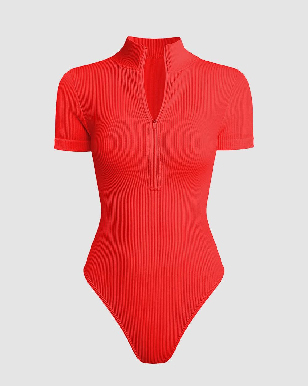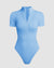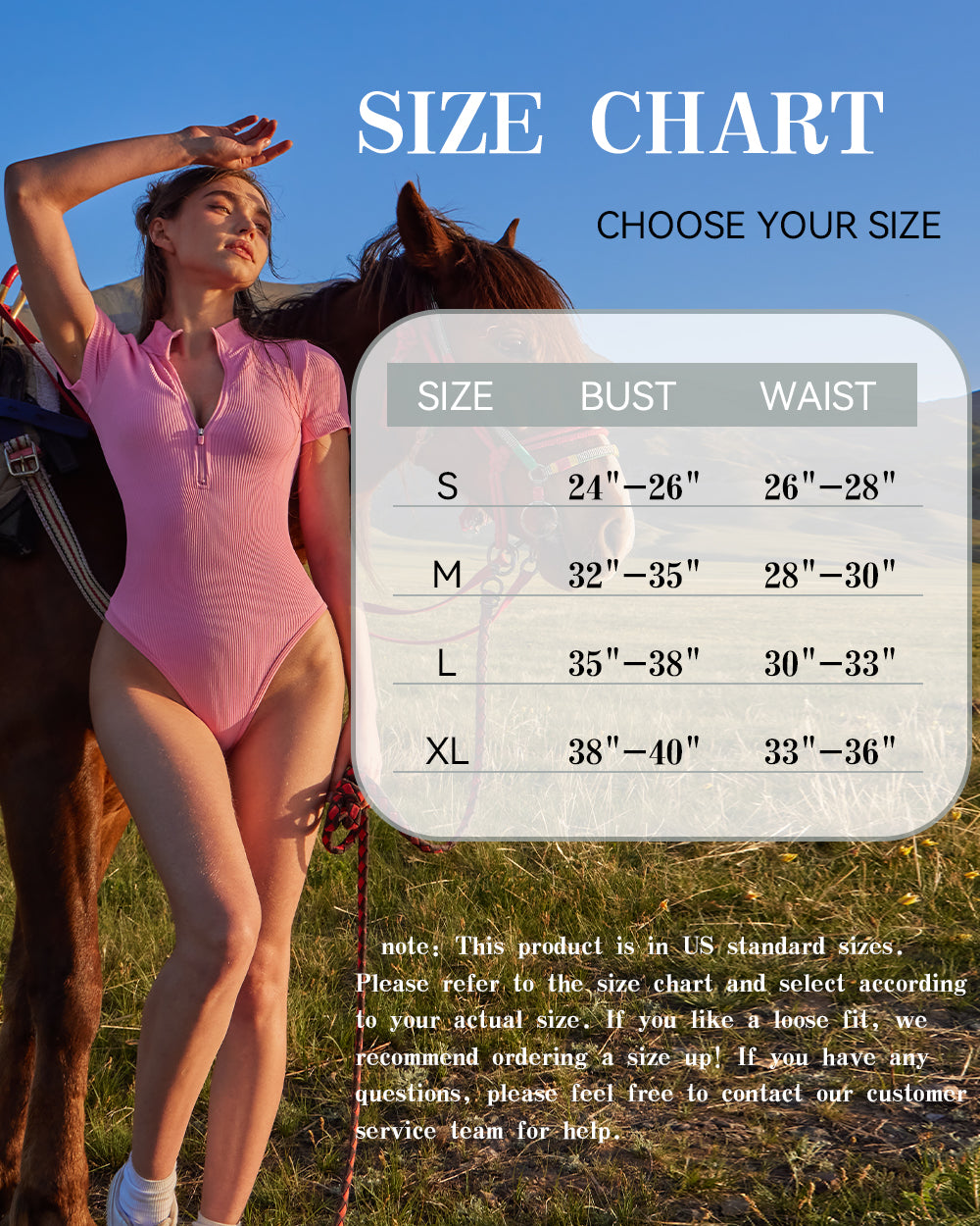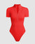90% Nylon, 10% Polyester Imported Machine Wash Trendy Classics Knit ribbed seamless design High elasticity Zip neck bodysuit Zip neck body suit