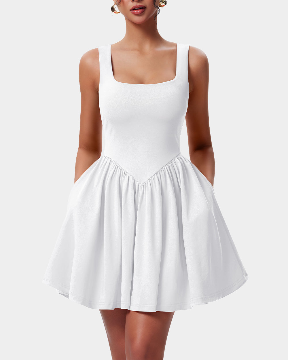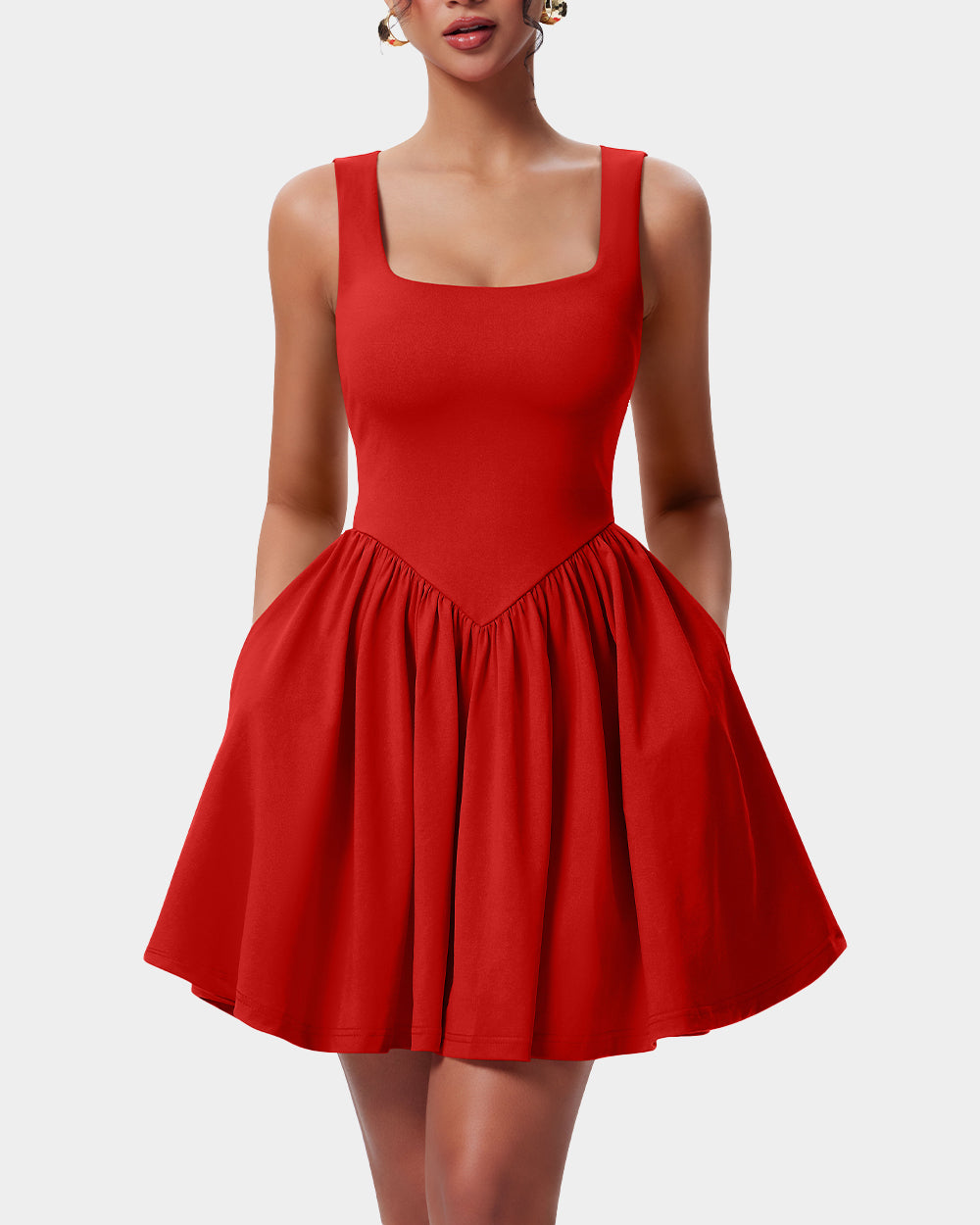 Square Neck Sleeveless Flared Mini Dress with Pockets