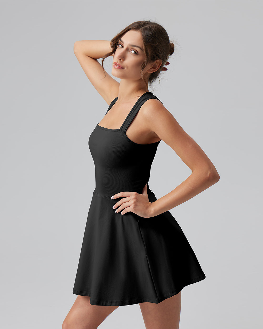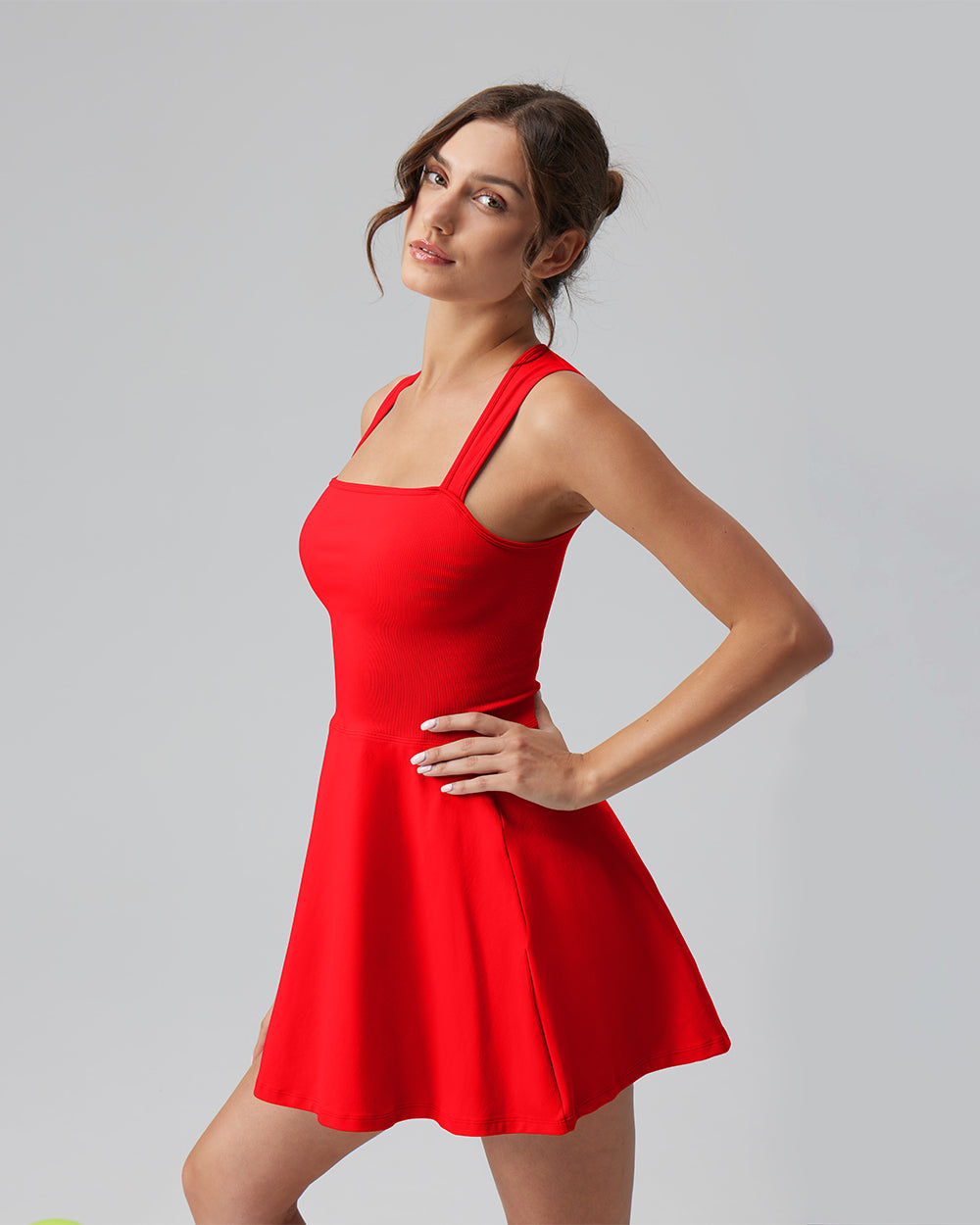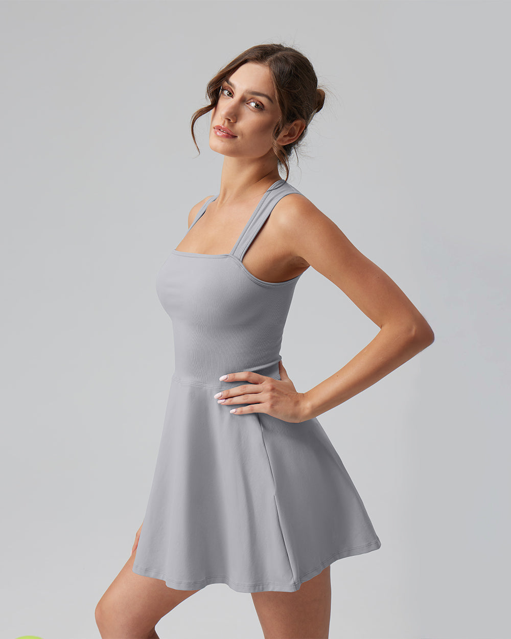 90% Nylon, 10% Spandex Machine Wash Imported Light and breathable Slight drape Tank Top Sleeveless A-line Mini Length