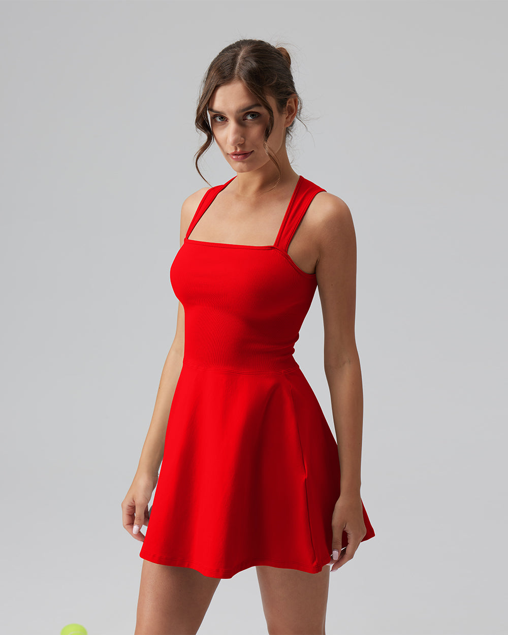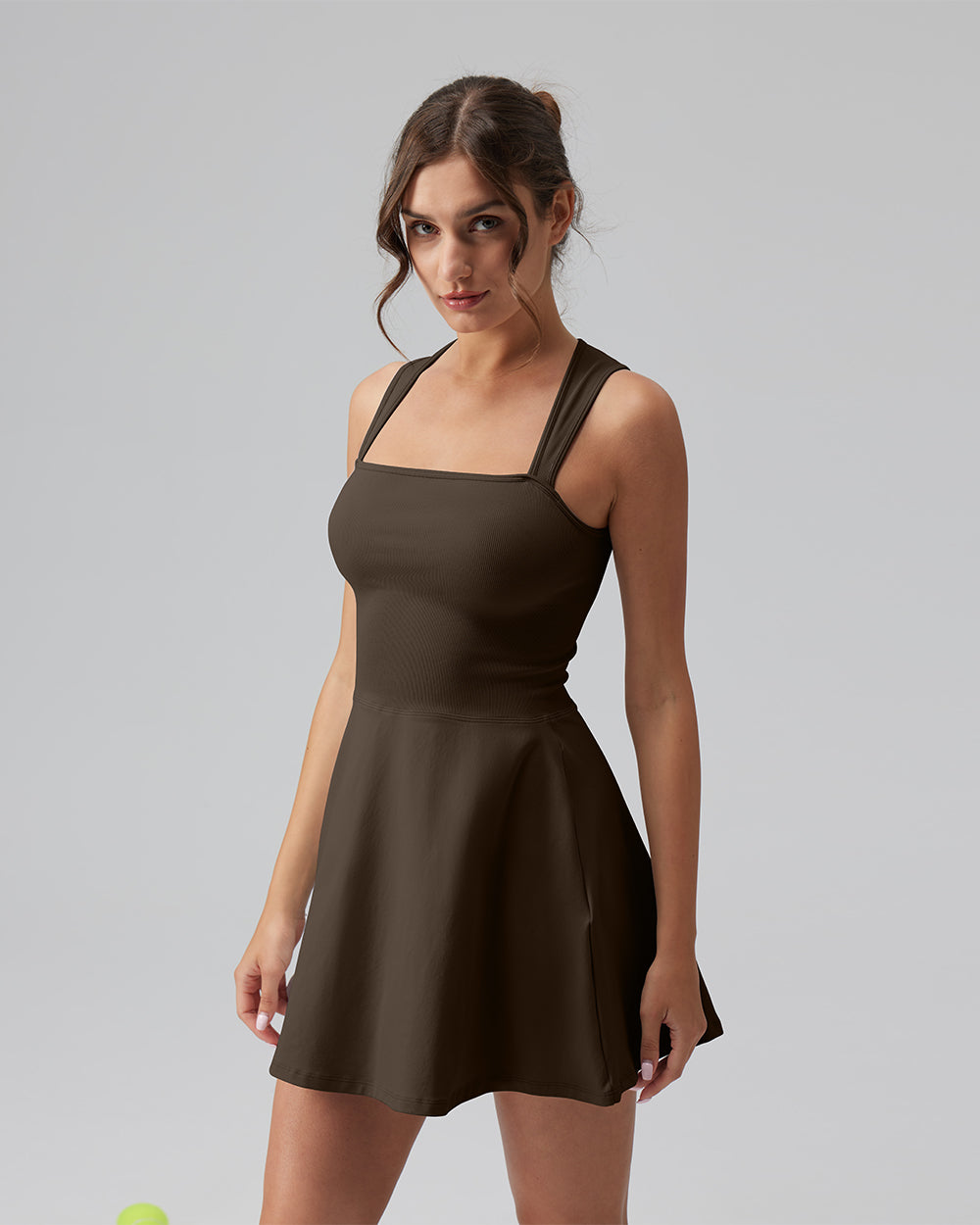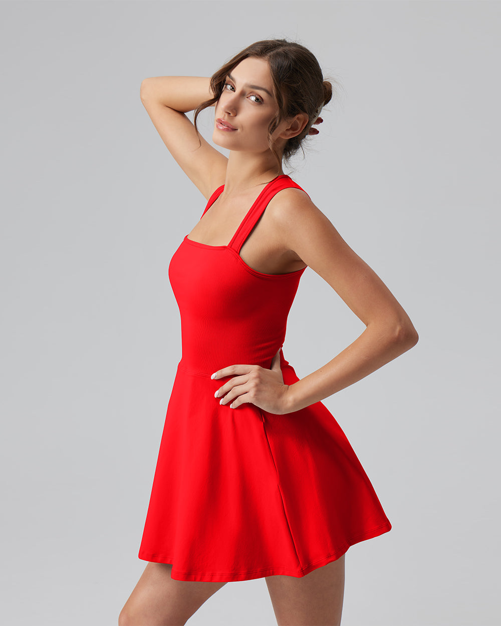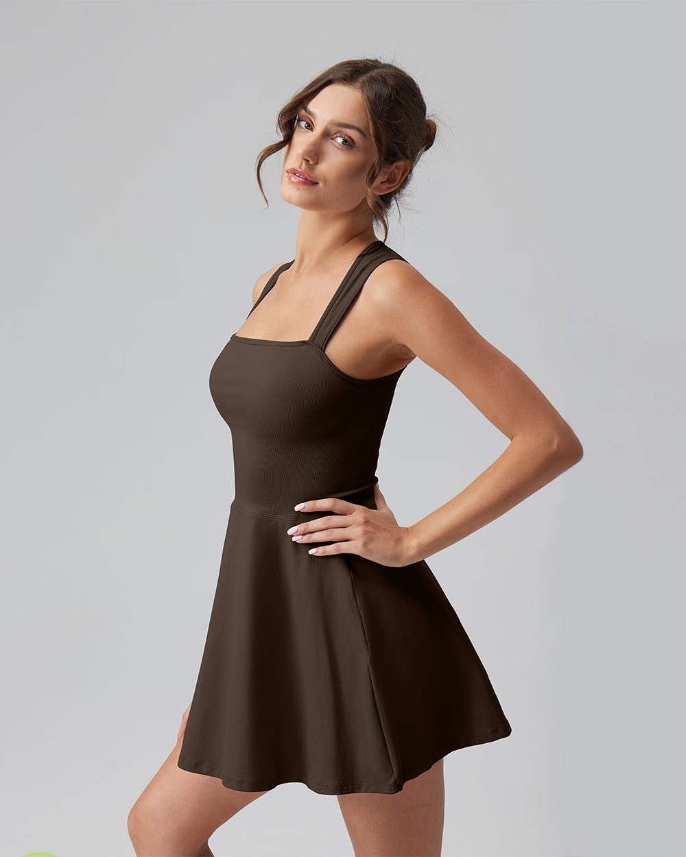 90% Nylon, 10% Spandex Machine Wash Imported Light and breathable Slight drape Tank Top Sleeveless A-line Mini Length