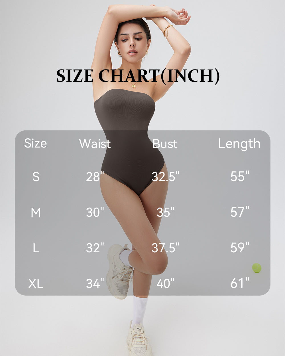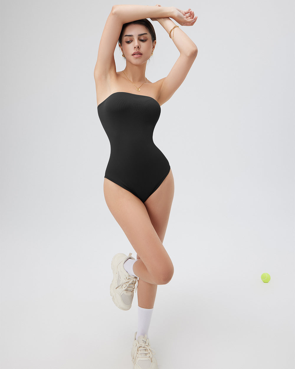 Elegant Strapless Design for Curvy SilhouettesThis strapless bandeau bodysuit hugs your chest perfectly while elongating your neck and shoulder lines, effortlessly creating a French-inspired lazy-chic vibe. Ideal for parties, dates, and other occasions, it lets you showcase your confident and glamorous side.