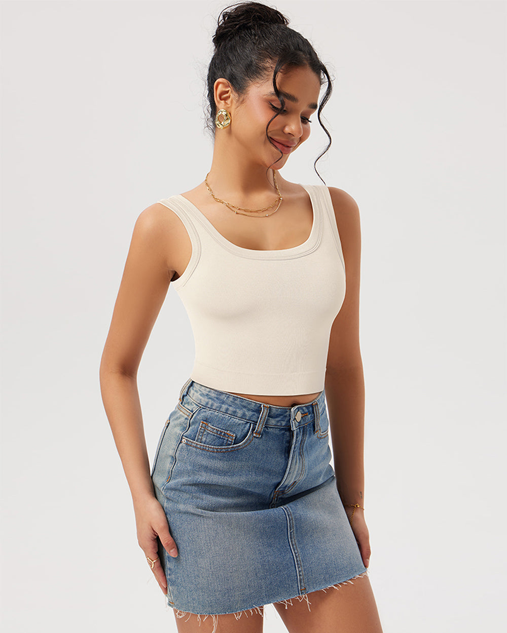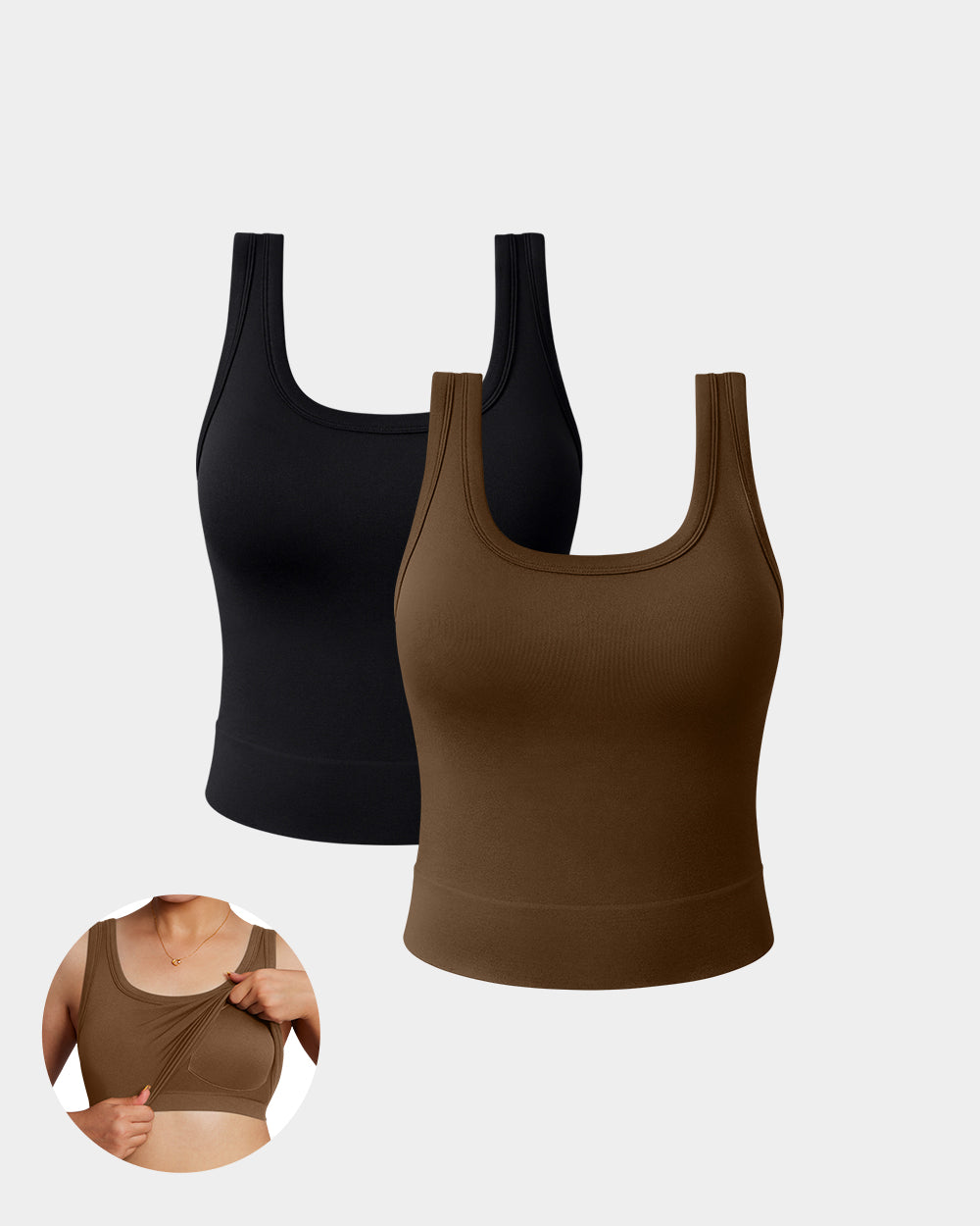 90% Nylon, 10% Spandex Machine Wash Pull-On closure Cut with a flattering scooped neckline removable padded cups Moisture-wicking, breathable and stretchy Giving you confidence and support for any occasion Fabric keeping you dry and comfortable