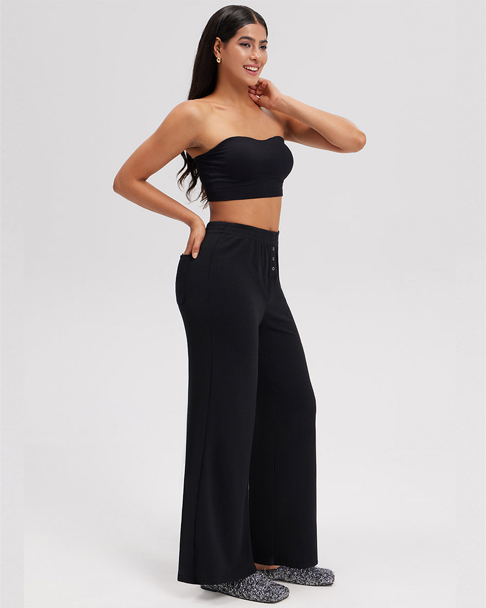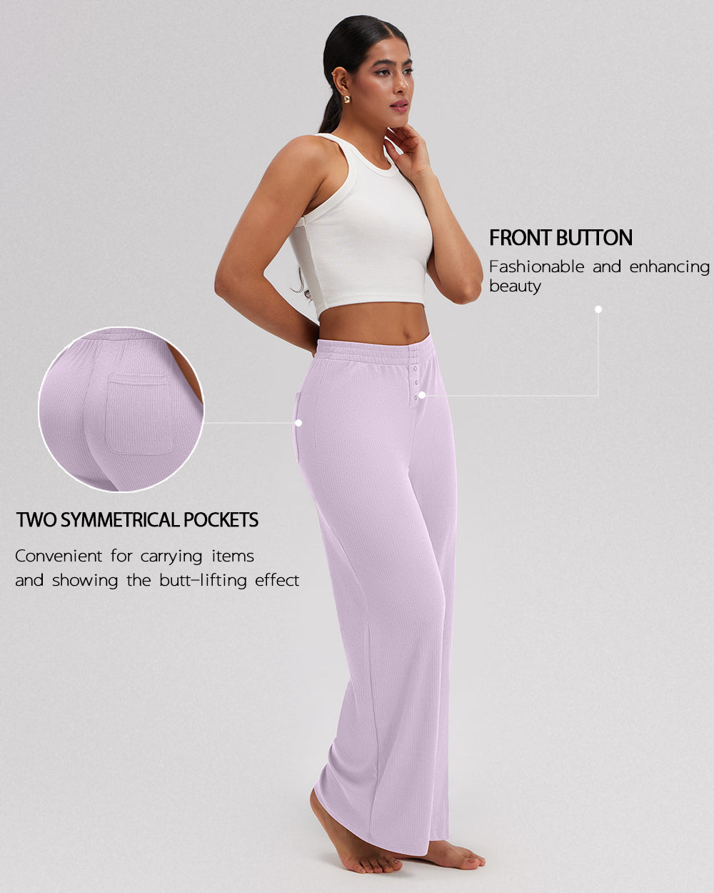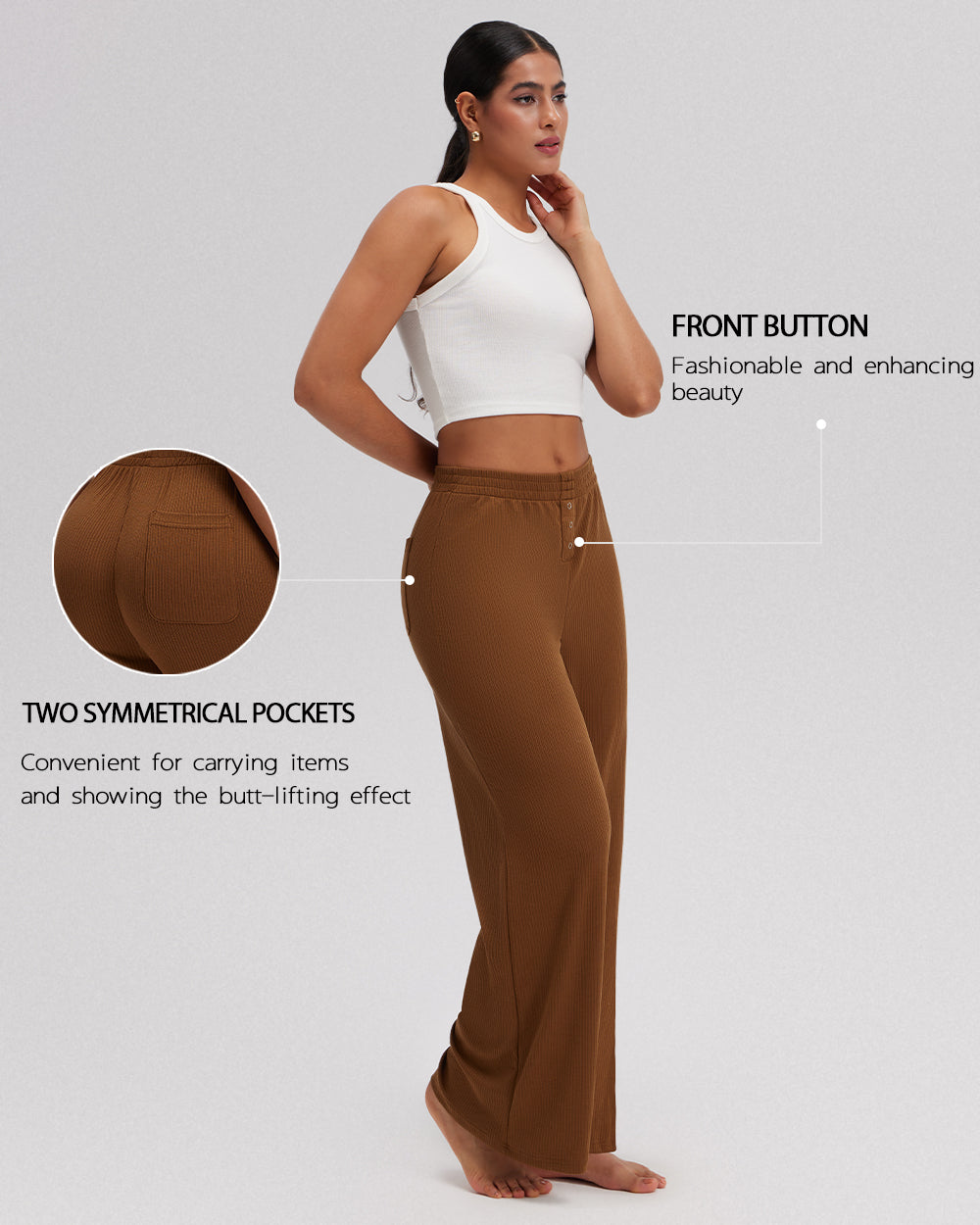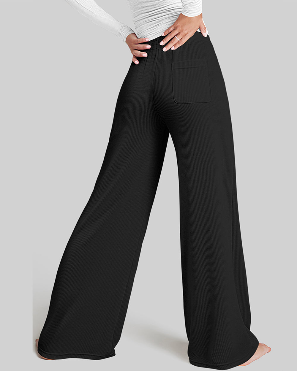 75% Nylon, 25% Spandex Machine Wash Imported High Waist Super soft and stretchy Pants with Back Pockets Comfy Relaxed Casual Pants