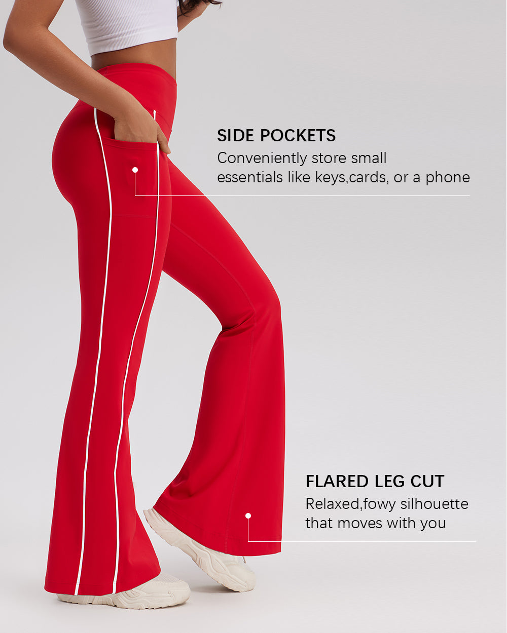 90% Nylon, 10% Polyester Machine Wash Imported High Waist Super soft and stretchy Side Stripe Gym Sport Workout Pants Trousers Comfy Relaxed Casual Pants