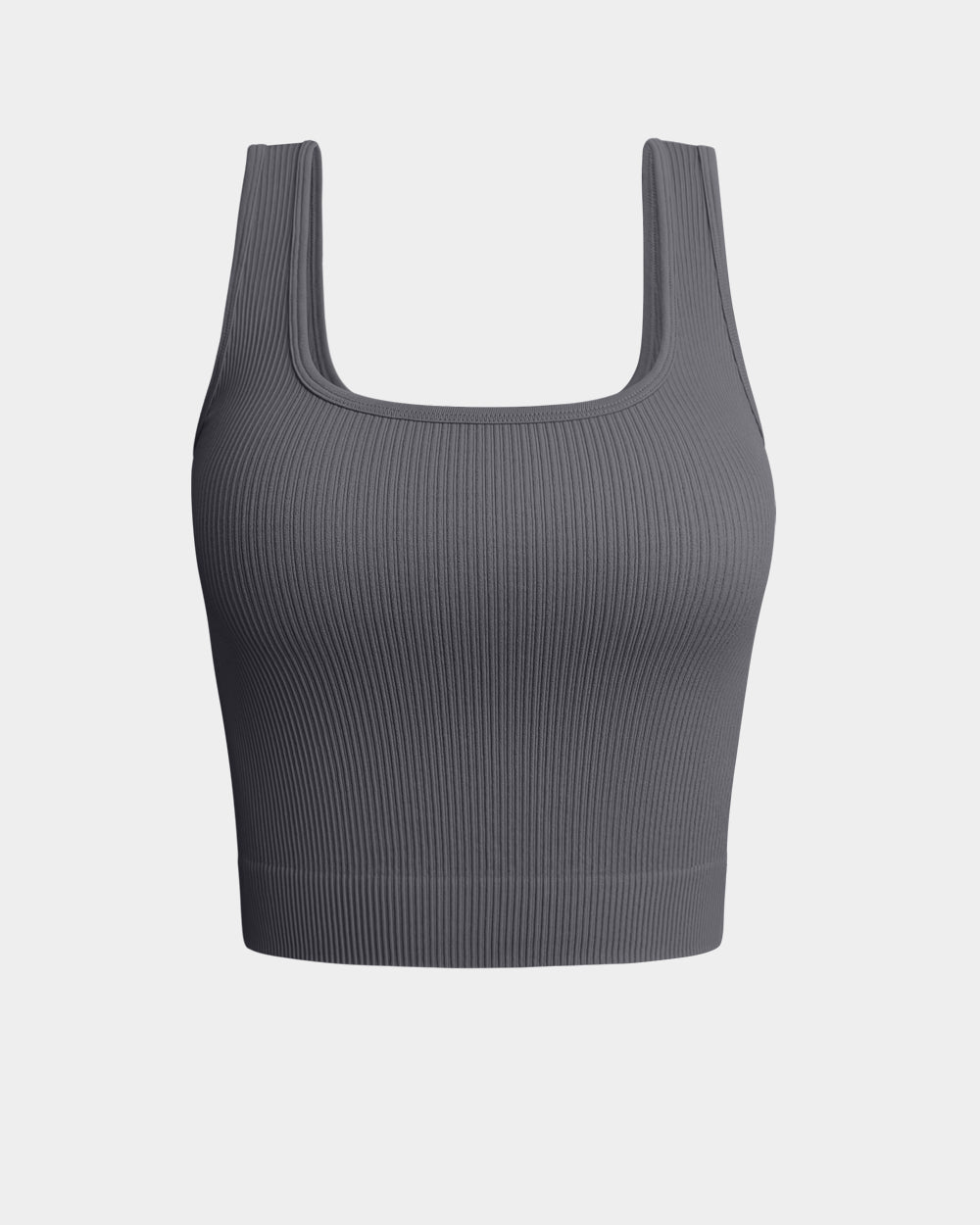90% Nylon, 10% Polyester Machine Wash Imported No removable padded cups Knit Ribbed Seamless Design Wide set straps Simple in design
